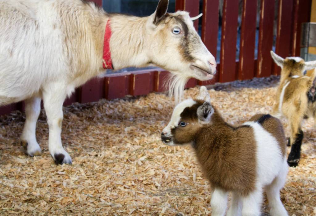 Along with the new goats, visitors to the farm can see a variety of animals, including pigs, budgies, finches, parakeets, chickens, guinea pigs, doves, goats, donkeys, alpacas, ducks and the farm cat.